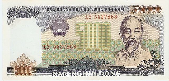 Prodam bankovce ŠE 5.000 ĐONG P104a-1987 ( VIETNAM) UNC kvaliteta.