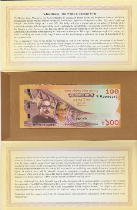 BANK.PRILOŽN. 100 TAKA P70b Most Padma v ovojnici (BANGLADEŠ) 2022.UNC