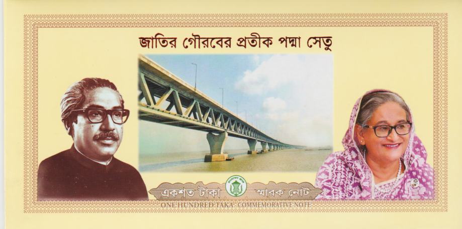 Prodam SPOMINSKI BANKOVEC 100 TAKA P70b Most Padma - simbol nacionalnega ponosa V OVOJNICI... (BANGLADEŠ) 2022.UNC kvalitete.