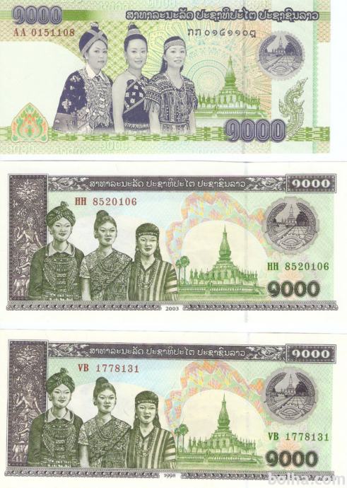 Prodam bankovec ŠE 1.000 KIP P32Aa-1998 CENA € 2,90,, 1.000 KIP P32Ab-2003 CENA € 1,90 (LAOS) UNC kvalitete.
