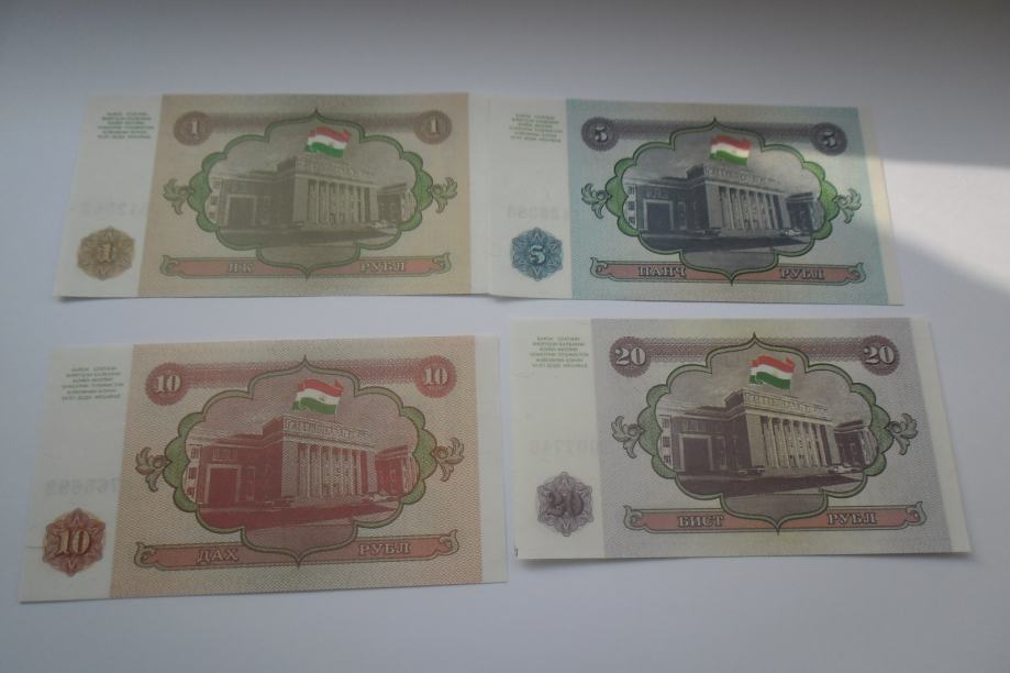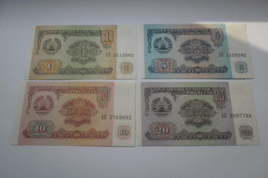BANKOVCI TAJIKISTAN 1,5,10 IN 20 RUBL 1994 UNC