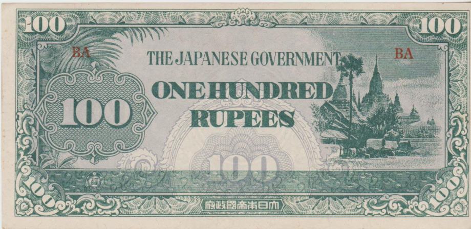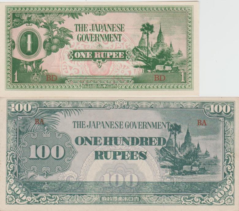 BANKOVEC 1-1942,100-1944 RUPES P12b,P17a (JAPONSKA OKUP. BURMA)UNC