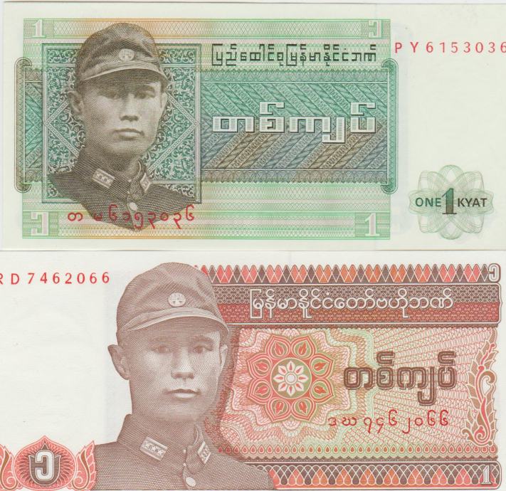 Prodam bankovec 1 KYAT P56a-1972 IN 1 KYAT P67a-1990 (MYANMAR MJANMAR) UNC kvaliteta. CENA JE ZA 1 BANKOVEC.