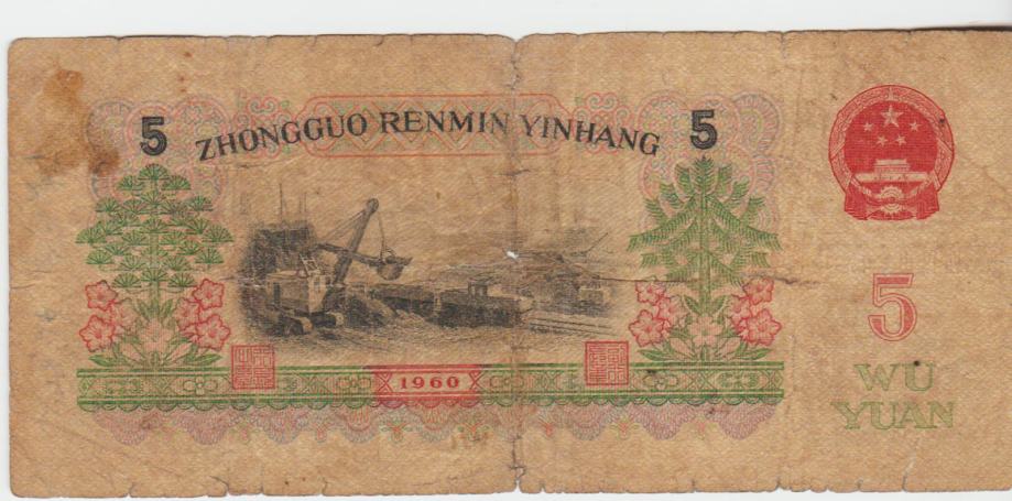 Prodam ZELO REDEK BANKOVEC 5 YUAN P876b -1960 CENA € 7,90 (KITAJSKA) F/VF kvaliteta.