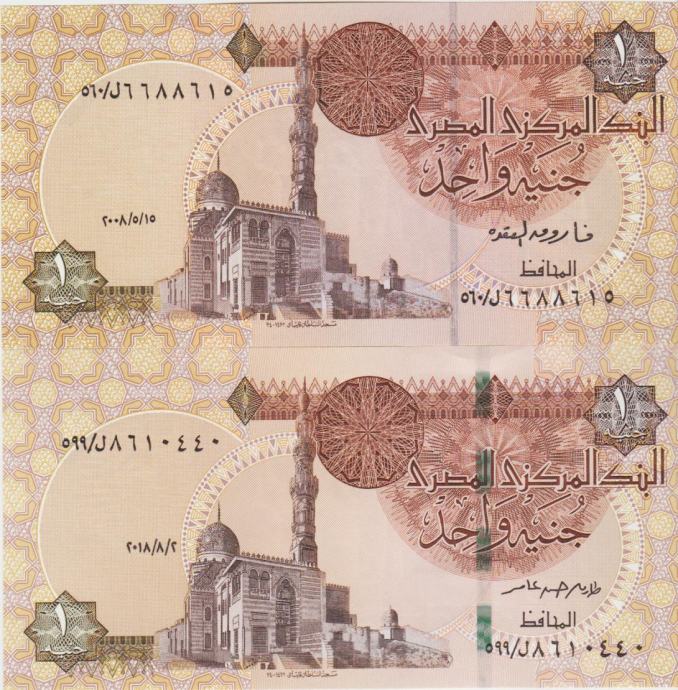 Prodam bankovec 1 POUND FUNT, P-50m-2008 IN 1 POUND FUNT, P-71g.4-2018 (EGIPT EGYPT) UNC kvaliteta.CENA JE ZA 1 BANKOVEC.