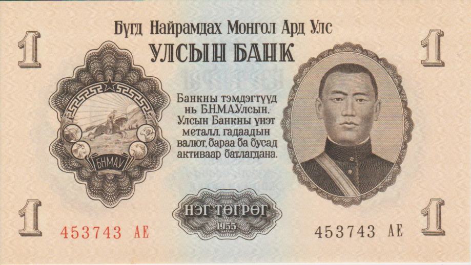 Prodam BANKOVEC 1 TUGRIK P28 CENA € 4,50 (MONGOLIJA) 1955.UNC kvalitete