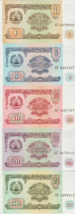 Prodam bankovec 1 RUBLE P1a CENA €0.90,, 5 RUBLE P2a CENA €1,10,, 10 RUBLE P3a CENA €1,30 ,, 20 RUBLE P4a CENA €1,40 IN 50 RUBLE P9a CENA € 1,50 (TAJIKISTAN TADŽIKISTAN) UNC kvalitete