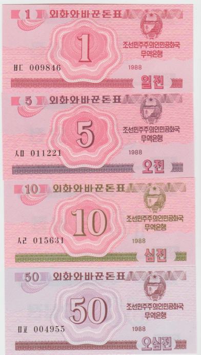 BANK. 1,5,10,50 CHON -ZA OBISK.SOCIALIST.DRŽAV(SEVERNA KOREJA)1988.UNC