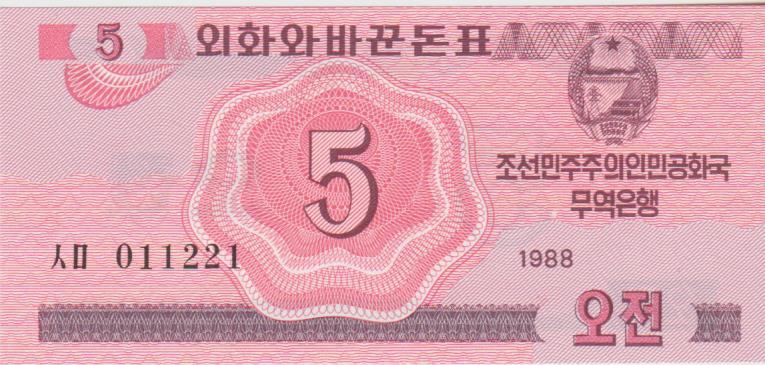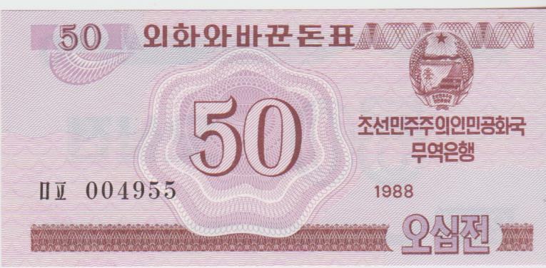 Prodam bankovec 1-P31,5-P32,10-P33, 50-P34 CHON (ČON) "ZA OBISKOVALCE IZ SOCIALISTIČNIH DRŽAV-(SEVERNA KOREJA)) 1988 UNC kvalitete.CENA JE ZA 1 BANKOVEC.
