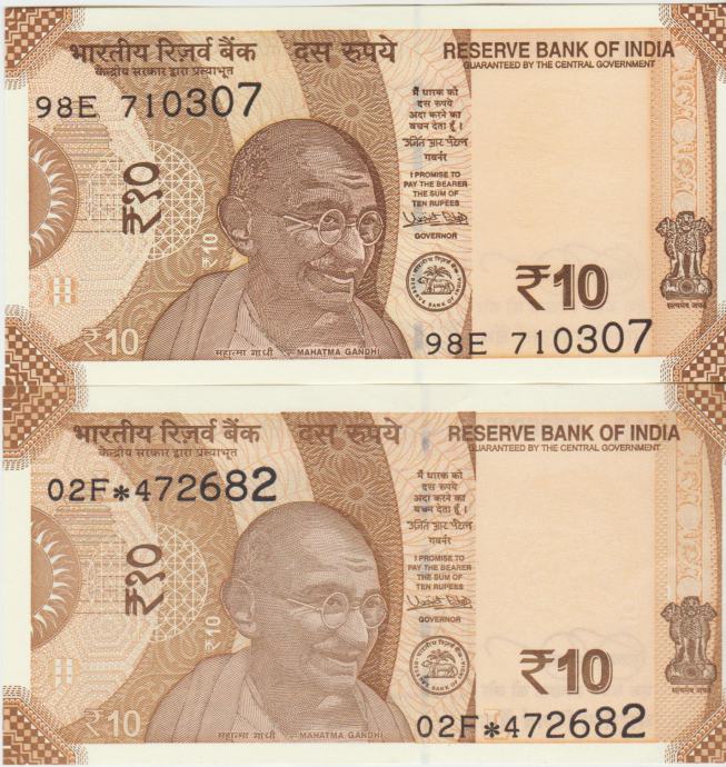 PRODAM BANKOVEC 10 RUPEES P109a.1-2017 in 10 RUPEES P109e-2018 (INDIJA) UNC - Kvaliteta.CENA JE ZA 1 BANKOVEC