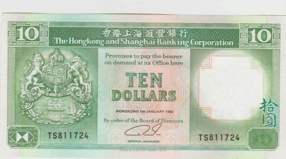 Prodam bankovec 10 DOLLARS P191 (HONG KONG) 1992.UNC Kvaliteta