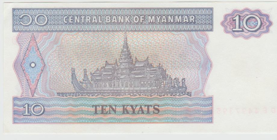 Prodam bankovec 10 KYAT P71a (MYANMAR MJANMAR) 1996, UNC kvaliteta.