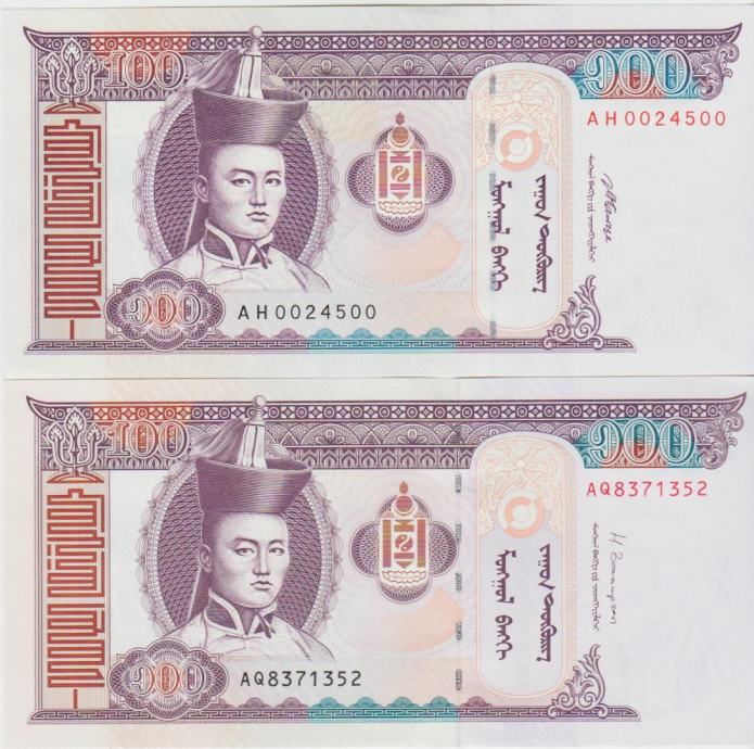 Prodam BANKOVCE 100 TUGRIK P65b-2008 CENA € 1,90 IN 100 TUGRIK P65c-2014 CENA € 1,90 (MONGOLIJA) UNC kvalitete.