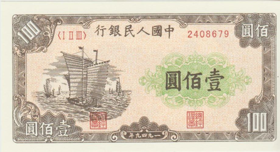 Prodam redke RAZLIČNE bankovce 100 YUAN št.1,2,3,4 (KITAJSKA LJUDSKA BANKA ) 1949. UNC kvaliteta. CENA JE ZA 1 BANKOVEC.Pošljem po pošti z navadnim pismom(0,70€), ali priporočeno(1,90€). Kupec plača stroške dostave.