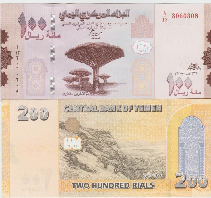 Prodam bankovec 100 RIALS P-37a CENA € 2,30 IN 200 RIALS P-38a CENA JE 2,90 ( JEMEN YEMEN) 2018.UNC kvalitete. CENA JE ZA 1 BANKOVEC.