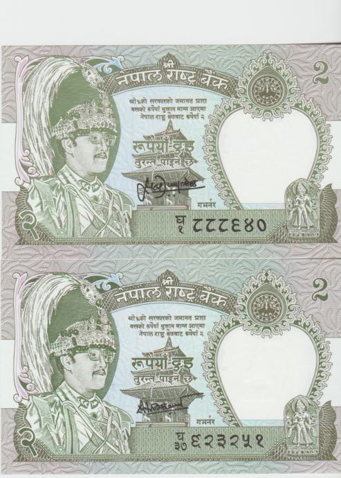 Prodam bankovec 2 RUPEES P29b.3-1995-ZGORNJI IN 2 RUPEES P29b.4-2001-SPODNJI (NEPAL) UNC kvalitete.CENA JE ZA 1 BANKOVEC.