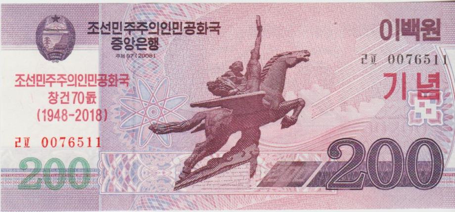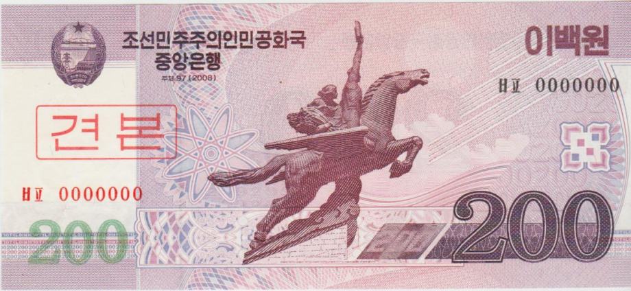 BANK. 200 WON P62s-SPECIMEN,P62a,70letPCS21a(SEVERNA KOREJA)2008.UNC