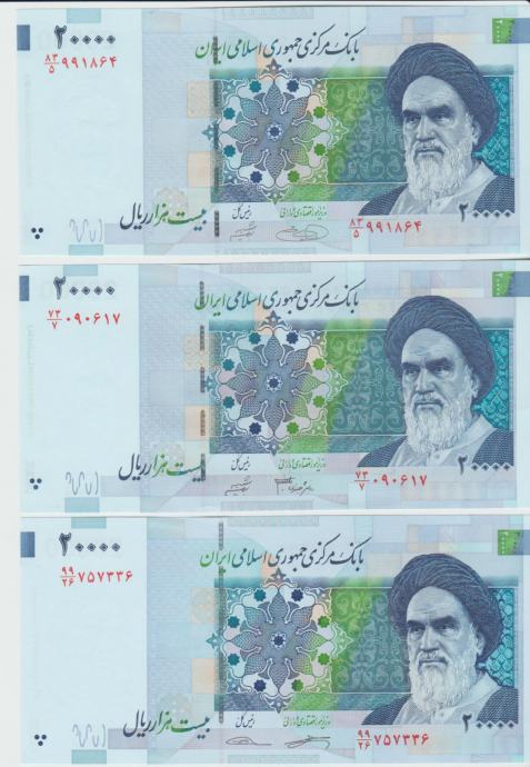 Prodam bankovec 20.000 RIALS P148a-2005,, 20.000 RIALS P148b-2005 in 20.000 RIALS P153b-2018 (IRAN) UNC kvalitete.