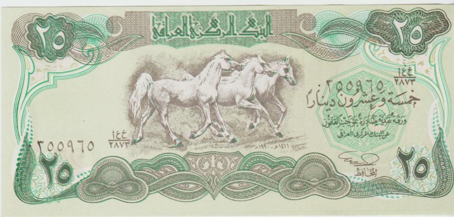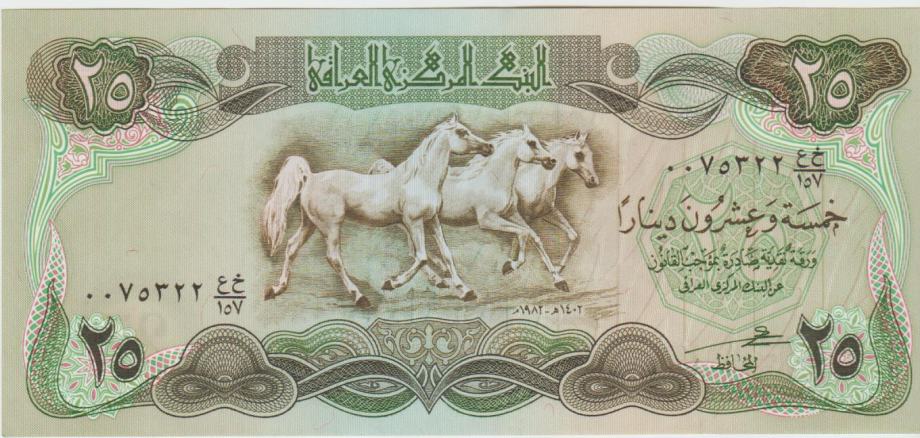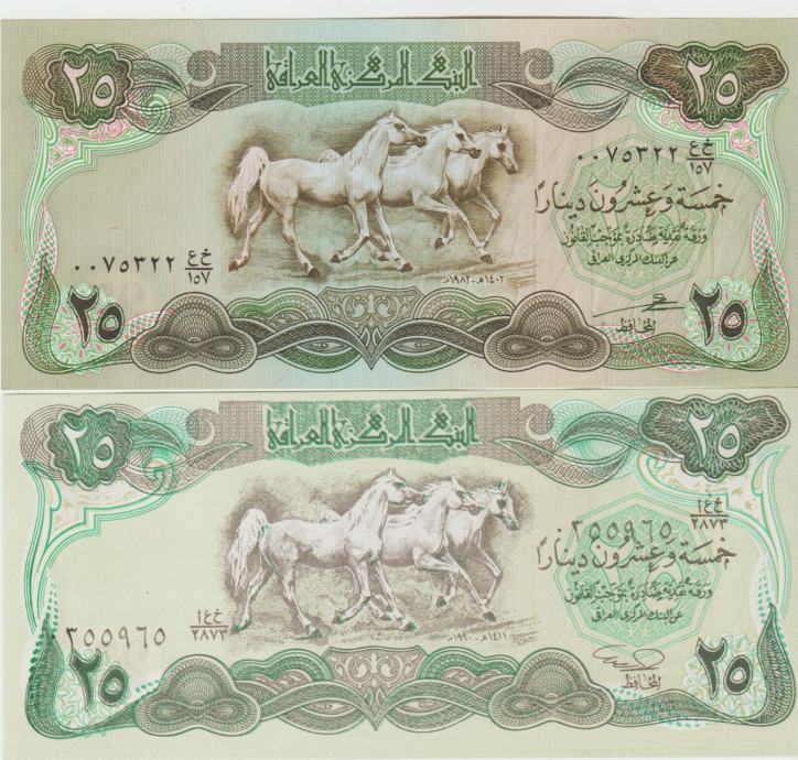 Prodam bankovec 25 DINARS P66b-1980 "vodni znak konjska glava " CENA € 3,80 IN 25 DINARS P74b-1990 "vodni znak zabrisani krogi " CENA € 1,90 (IRAK IRAQ) UNC kvalitete.
