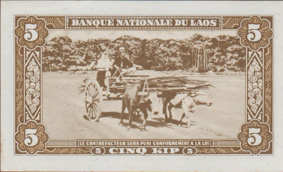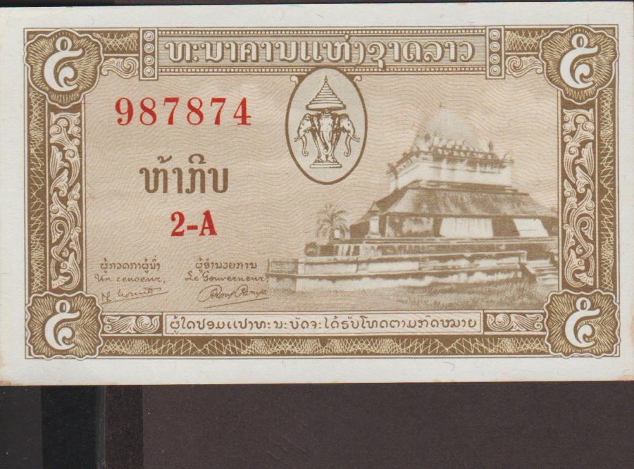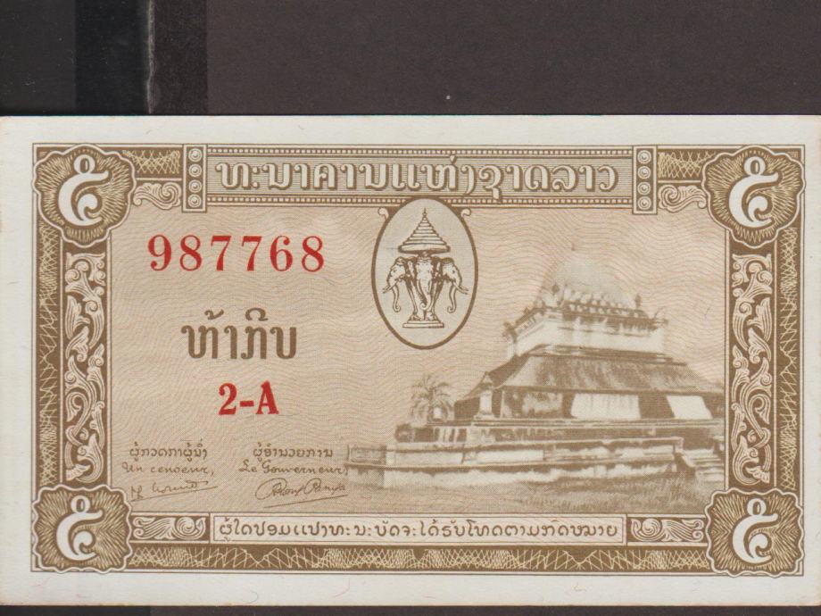 Prodam ZELO REDEK BANKOVEC 5 KIP-P2b (LAOS) 1957.aUNC/UNC CENA JE ZA 1 BANKOVEC.