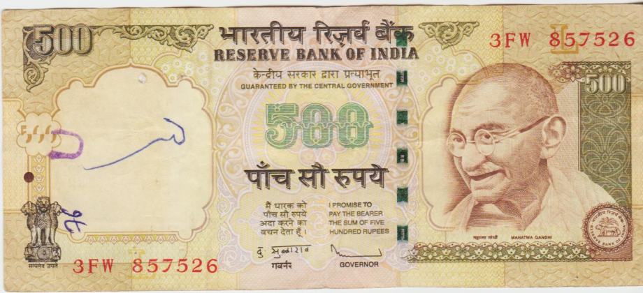 PRODAM BANKOVEC 500 RUPEES P99p "brez črke" 2009, 500 RUPEES P99t "brez črke" 2010 IN 500 RUPEES P106d "črka R" 2012 (INDIJA) VF/VF++Kvaliteta. CENA JE ZA 1 BANKOVEC