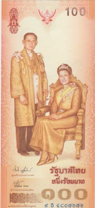 BANKOVEC SPOMIN. 100 BAHT P111"72rojs.dan kral.SINKIT"(TAJSKA)2004.UNC