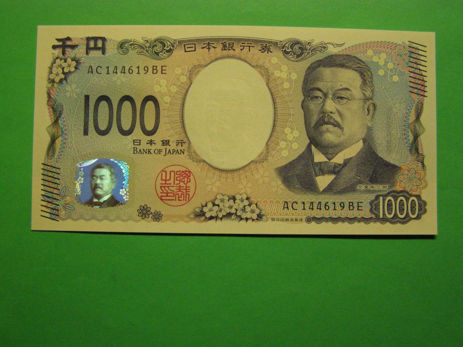Prodam bankovec za 1000 Yenov (1000 JPY) iz Japonske, kot ga lahko vidite na fotografijah in je povsem nov - UNC kvalitete.