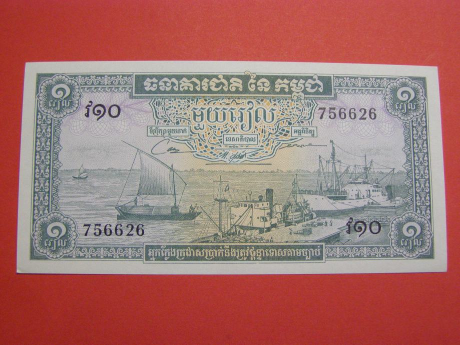 Prodam bankovec iz Kambođe za 1 Riel (1 KHR), kot ga lahko vidite na fotografijah in je povsem nov - UNC kvalitete.