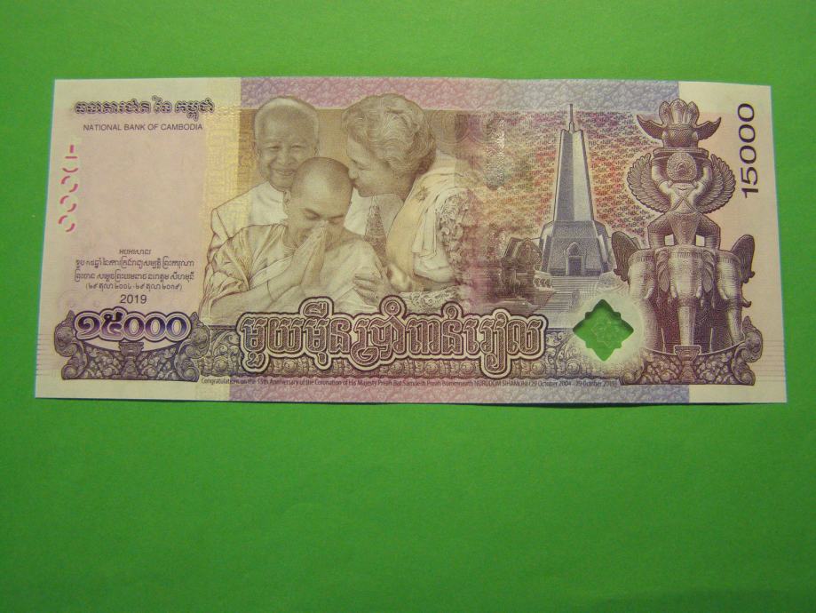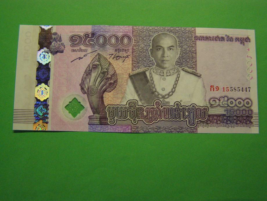 Prodam PRILOŽNOSTNI bankovec za 15.000 Rielov iz Kambodže (15.000 KHR), kot ga lahko vidite na fotografijah in je povsem nov - UNC kvalitete.