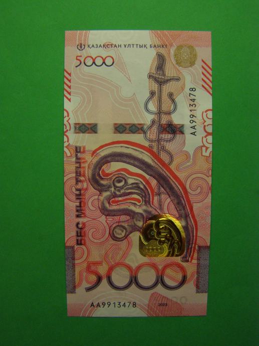 Prodam novi DIZAJN bankovca za 5000 Tenge (5000 KZT) iz Kazakstana, serije "SAKA STYLE", kot ga lahko vidite na fotografijah in je povsem nov - UNC kvalitete.