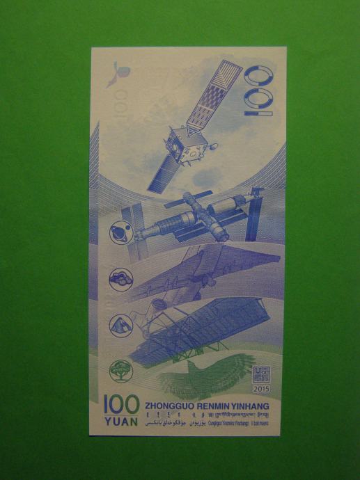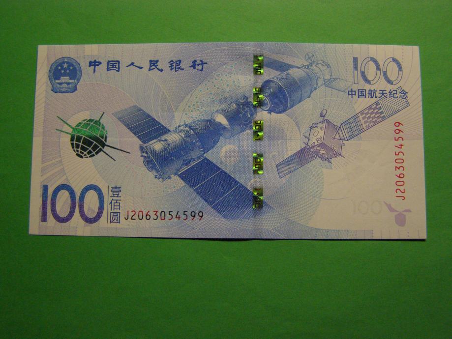 Prodam PRILOŽNOSTNI bankovca za 100 Yuanov (100 CNY) iz Kitajske, izdan v obeležje "vesoljske tehnologije in znanosti", kot ga lahko vidite na fotografijah. Bankovec je povsem nov - UNC kvalitete.