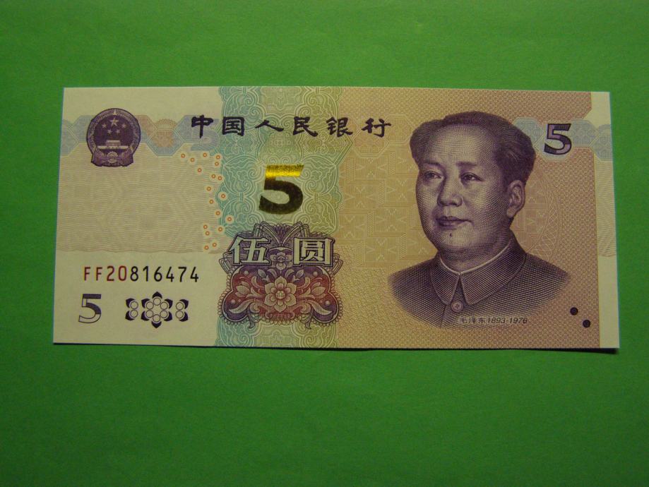 Prodam bankovec za 5 Yuan iz Kitajske (5 CNY), kot ga lahko vidite na fotografijah in je povsem nov - UNC kvalitete.