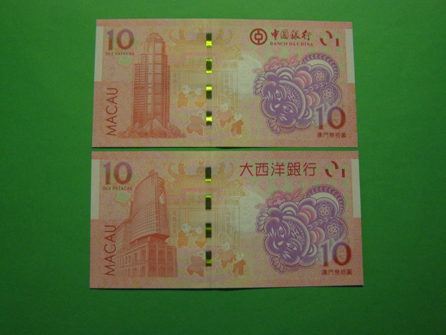 Prodam dva bankovca za 10 Patacas iz Macaa (2 x 10 MOP), kot ju vidite na fotografijah in sta nova - UNC kvalitete. Leto tigra (Banco Da China in Banco Nacional Ultramarino). Lunar : Leto tigra