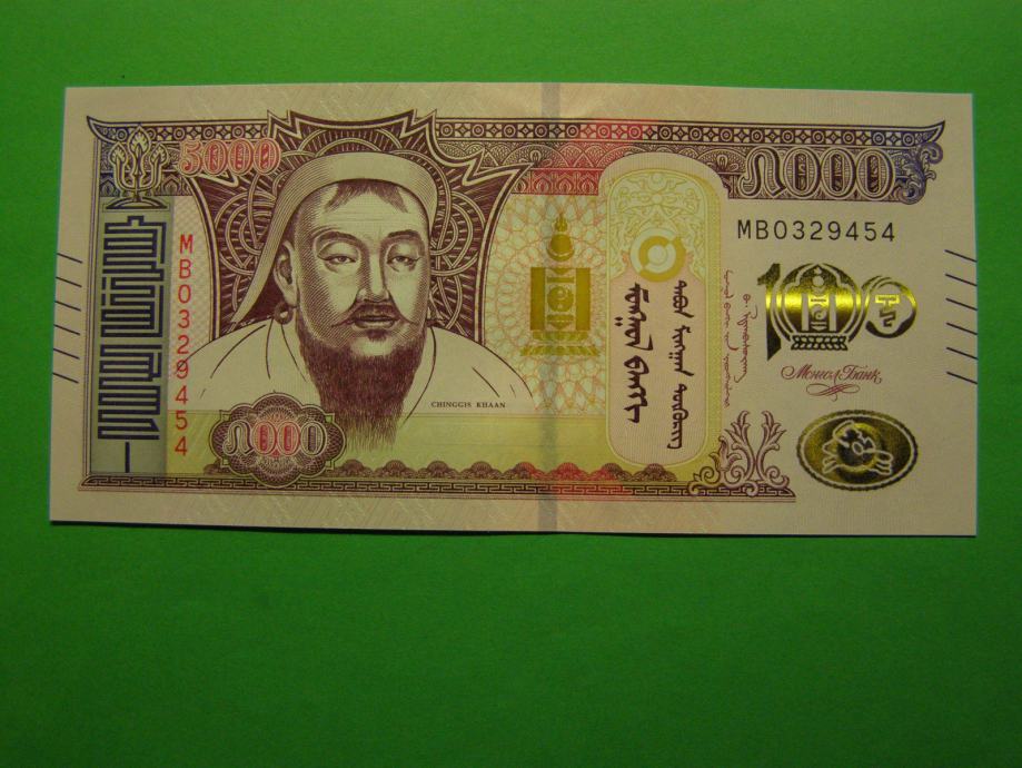 Prodam PRILOŽNOSTNI bankovec za 5.000 Tugrikov iz Mongolije (5.000 MNT), kot ga lahko vidite na fotografijah in je povsem nov - UNC kvalitete.