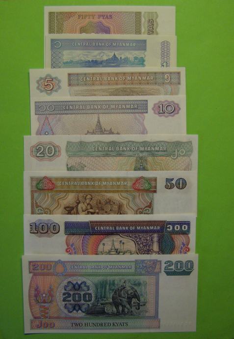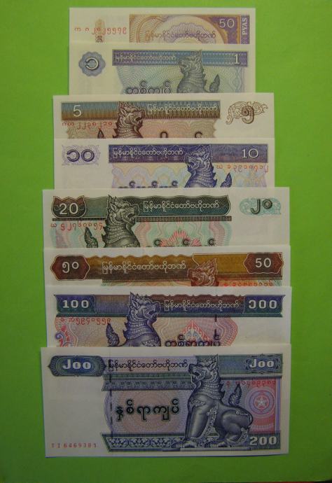 Prodam SET bankovcev od 0,50 do 200 Kyats (0.50,1,5,10,20,50,100,200 NMK) iz Myanmarja, kot jih lahko vidite na fotografijah in so povsem novi - UNC kvalitete.