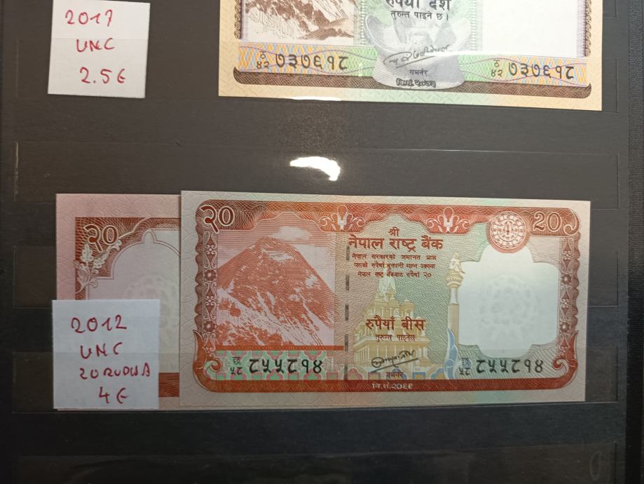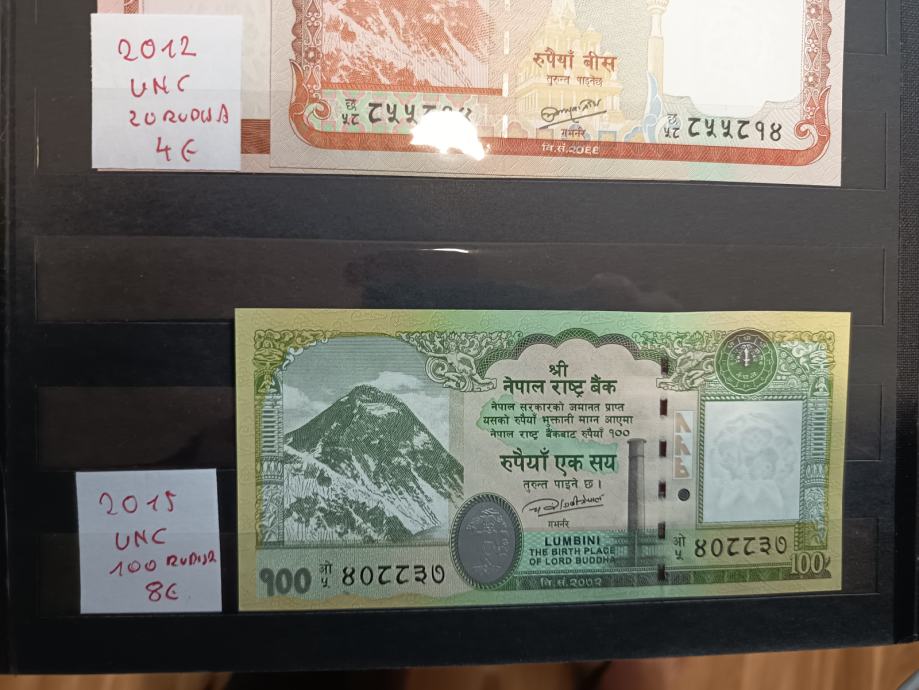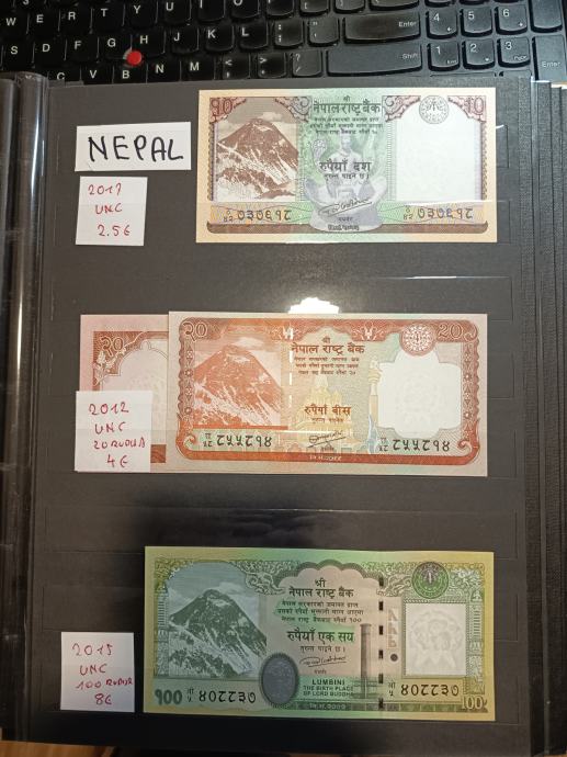 Prodam bankovce Nepal za 10, 20 in 100 rupija. Na zadnji strani je upodobljen Mt. Everest.