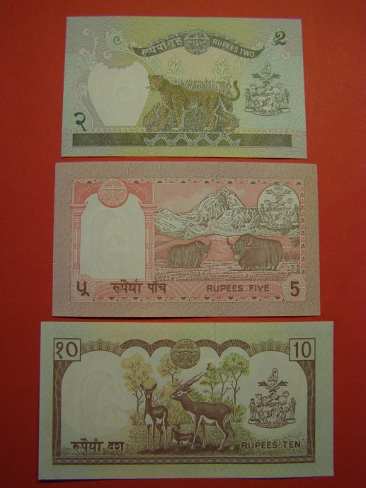 Prodam set bankovcev za 2, 5 in 10 Rupij (2,5,10 NPR) iz Nepala, kot jih vidite na fotografijah. Bankovci so povsem novi - UNC kvalitete.