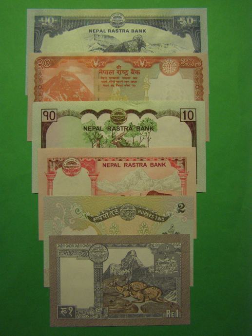Prodam set bankovcev za 1, 2, 5, 10, 20 in 50 Rupij (1,2,5,10,20 in 50 NPR) iz Nepala, kot jih lahko vidite na fotografijah. Bankovci so povsem novi - UNC kvalitete.