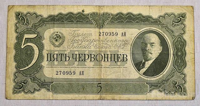 Ugodno prodam bankovec iz Rusije leto za 5 červonec iz leta 1937. Kvaliteta zelo lep (VF). Cena 13 EUR. Bankovec je na sliki.