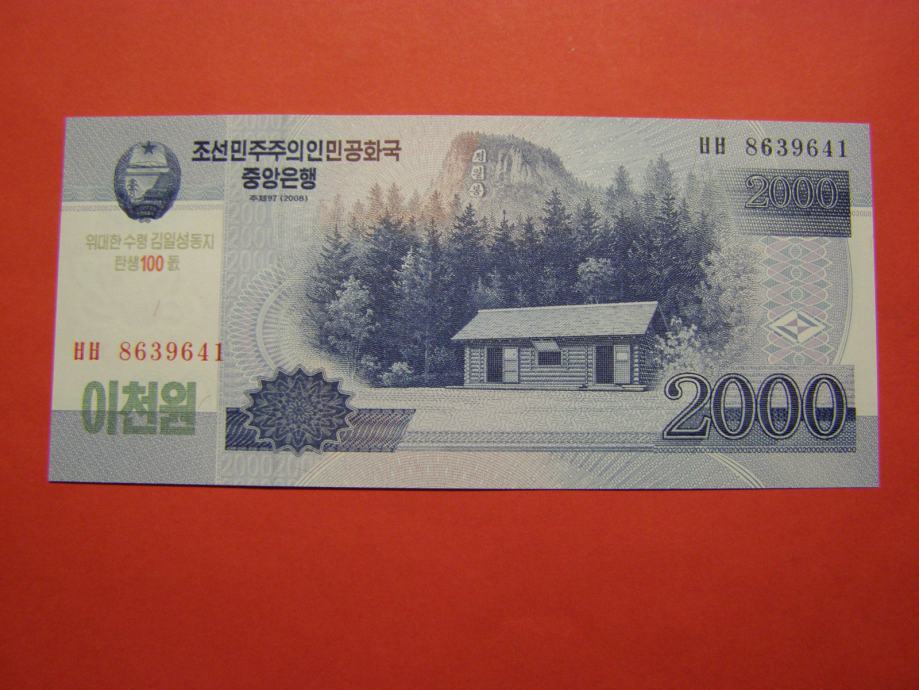 Prodam PRILOŽNOSTNI bankovec za 2000 Wonov iz Severne Koreje, kot ga lahko vidite na fotografijah. Bankovec je povsem nov - UNC kvalitete.