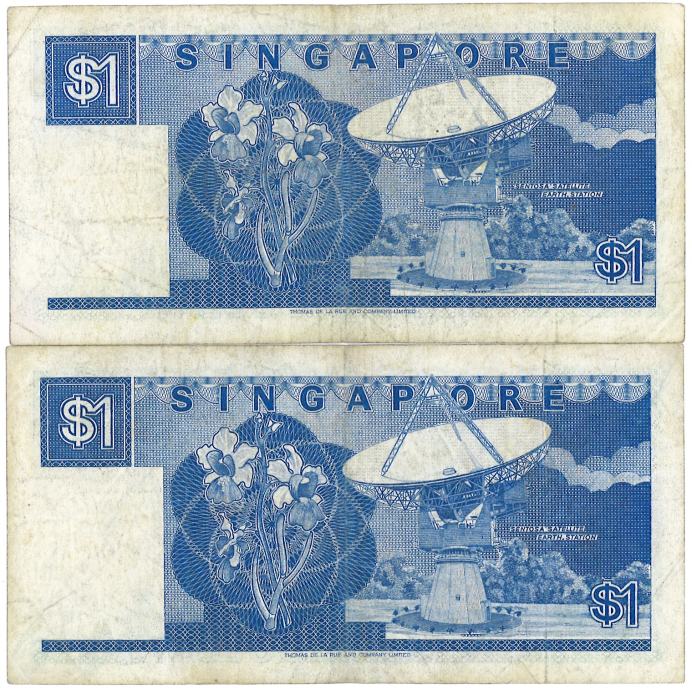 Prodam bankovca na fotografiji: Singapur 1 $ 1987 jadrnica Sečuan, roža lilija, ribe, satelitske antene, živali. Cena je za kos.