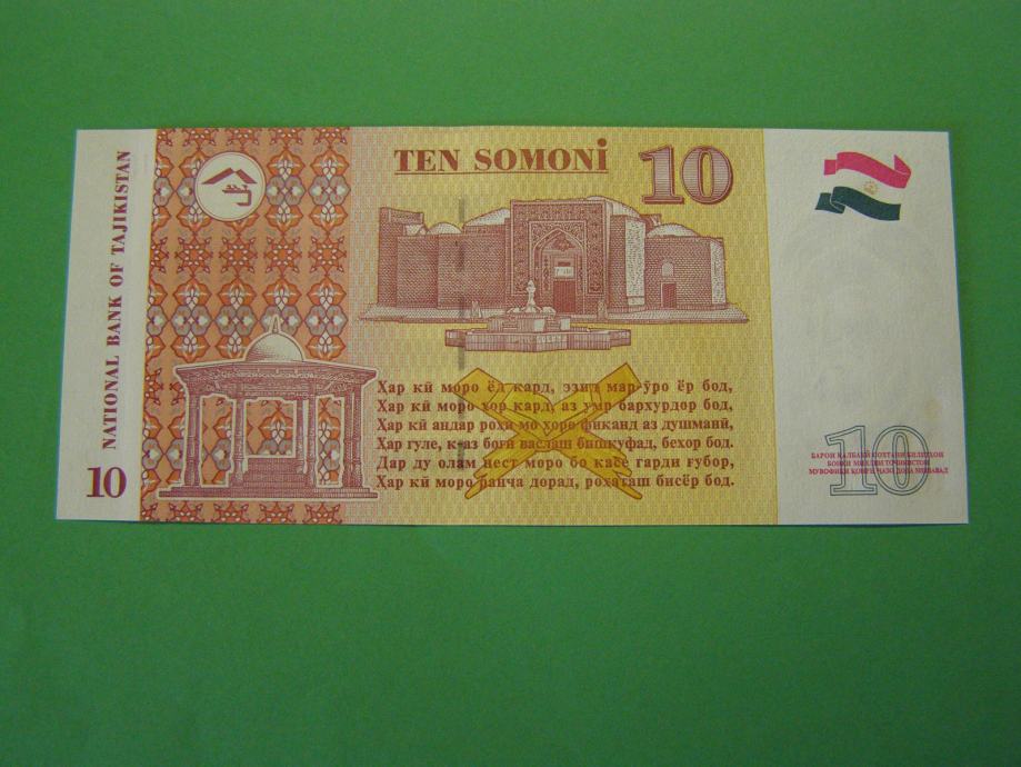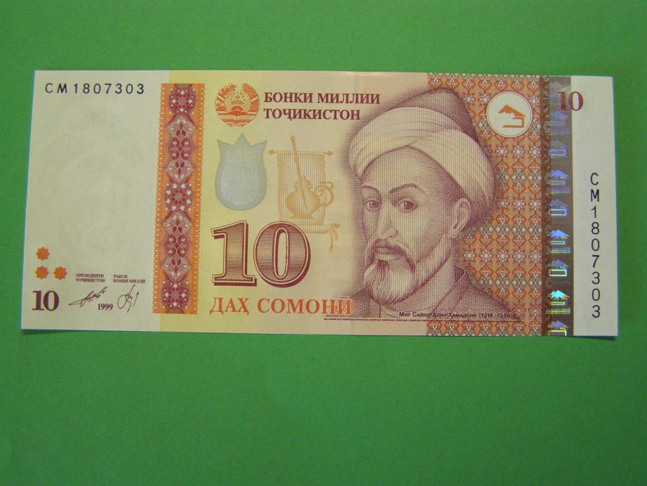 Prodam bankovec za 10 Somoni iz Tađikistana, kot ga lahko vidite na fotografijah. Bankovec je povsem nov - UNC kvalitete.