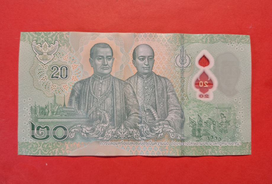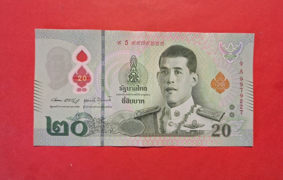 Prodam POLIMERNI bankovec za 20 Batov iz Tajske, kot ga lahko vidite na fotografijah. Bankovec je iz obtoka in XF kvalitete.