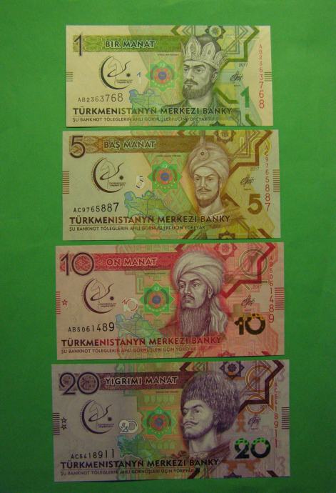 Prodam PRILOŽNOSTNI set bankovcev za 1, 5, 10 in 20 Manat (1, 5, 10, 20 TMT) iz Turkmenistana (5. azijske igre borilnih veščin na prostem), kot jih lahko vidite na fotografijah in so povsem novi - UNC kvalitete.