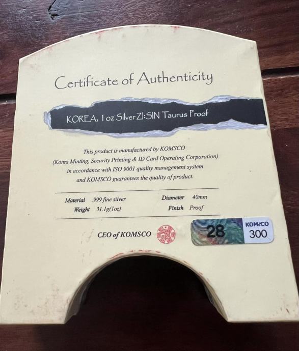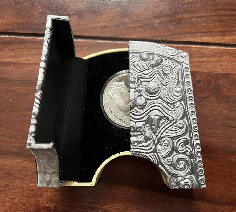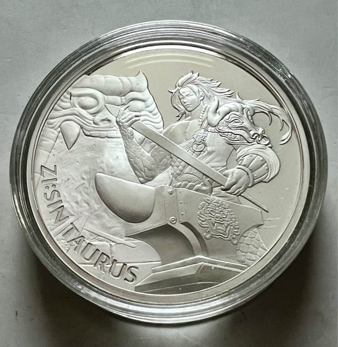 Srebrnik iz korejske serije ZI:SIN - 12 varuhov, ki nas ščitijo pred temnimi silami iz 12 strani neba. Varuhi sovpadajo z 12 znamenji kitajskega horoskopa. Taurus je bog vojne, zadolžen za kovanje orožja in ustreza horoskopskemu znamenju bika.