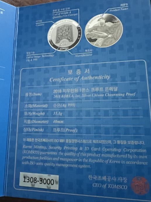 ‼️ REDEK 1 OZ SREBRNIK CHIWOO CHEONWANG