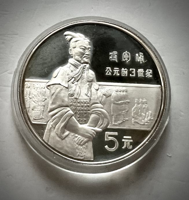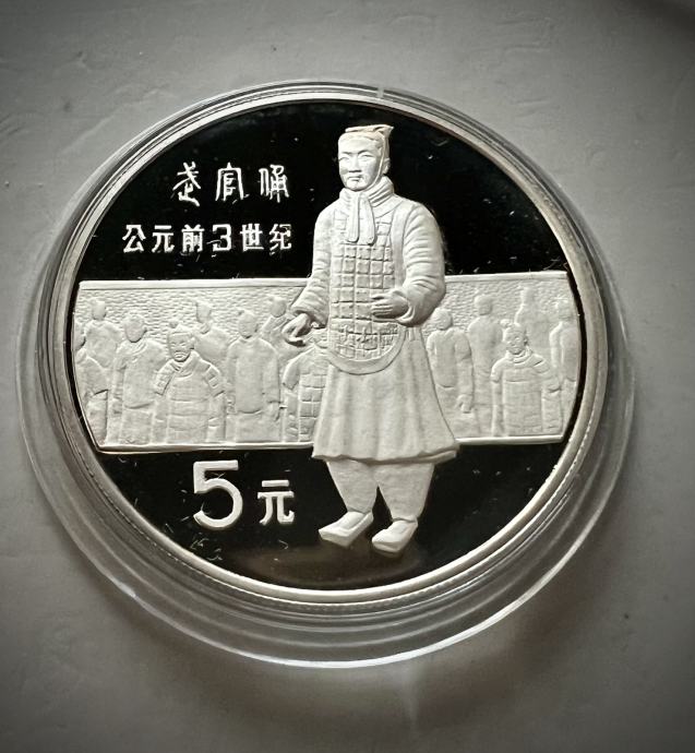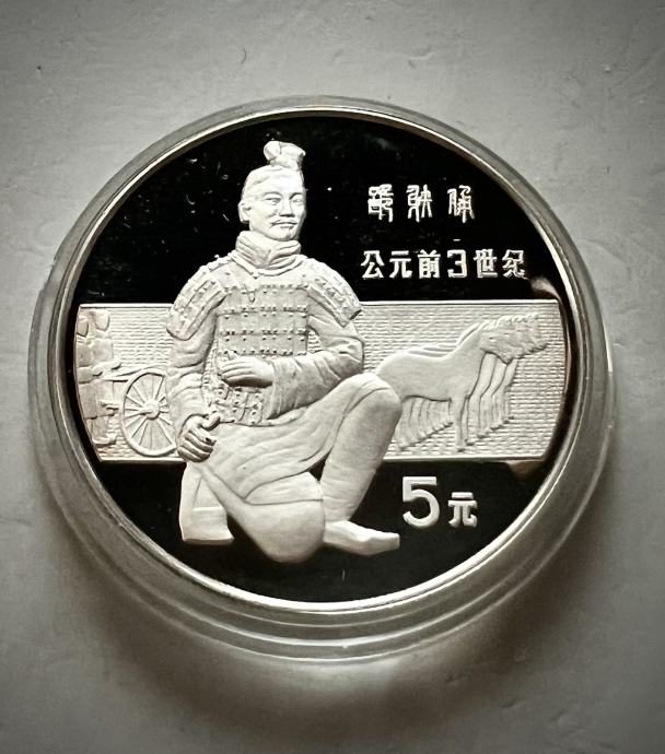 1. 1984, 5 yuan, proof Kneeling Soldier, Srebro .900, teža: 22 g, premer: 36 mm