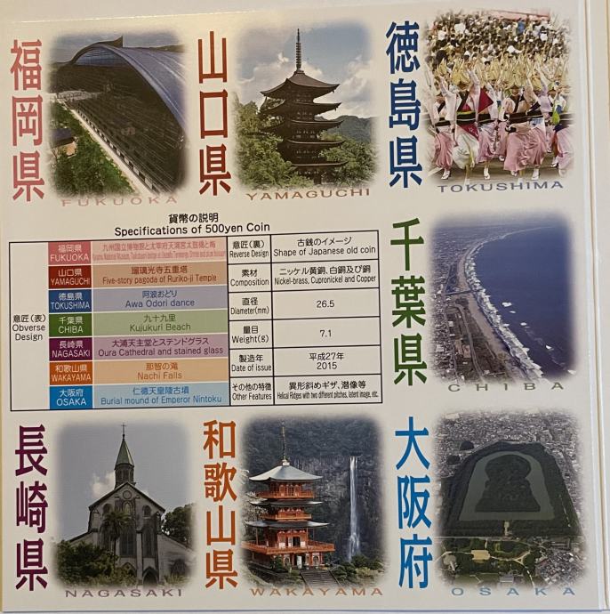 Japonska 500 Yen 2015-Prefekture