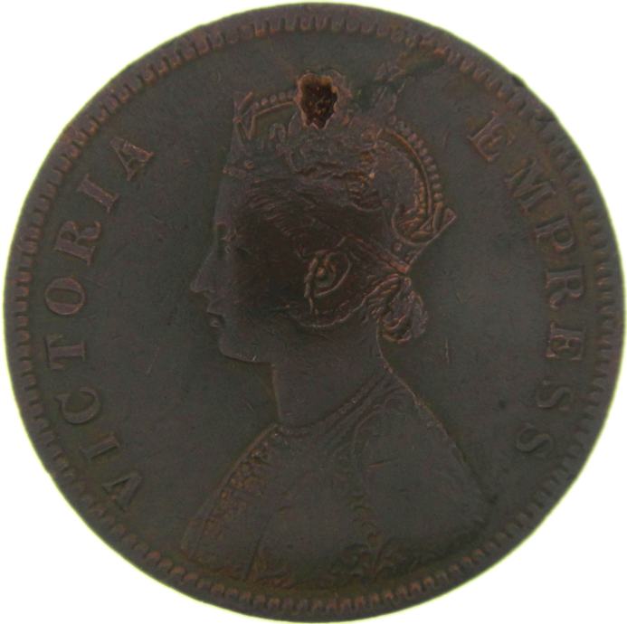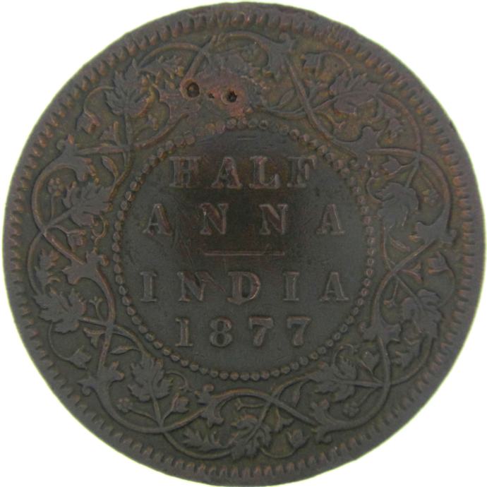 LaZooRo: Britanska Indija 1/2 Anna 1877 VF / XF manipulirano