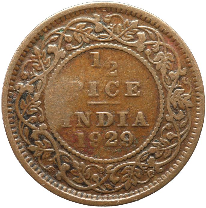 LaZooRo: Britanska Indija 1/2 Pice 1929 F / VF